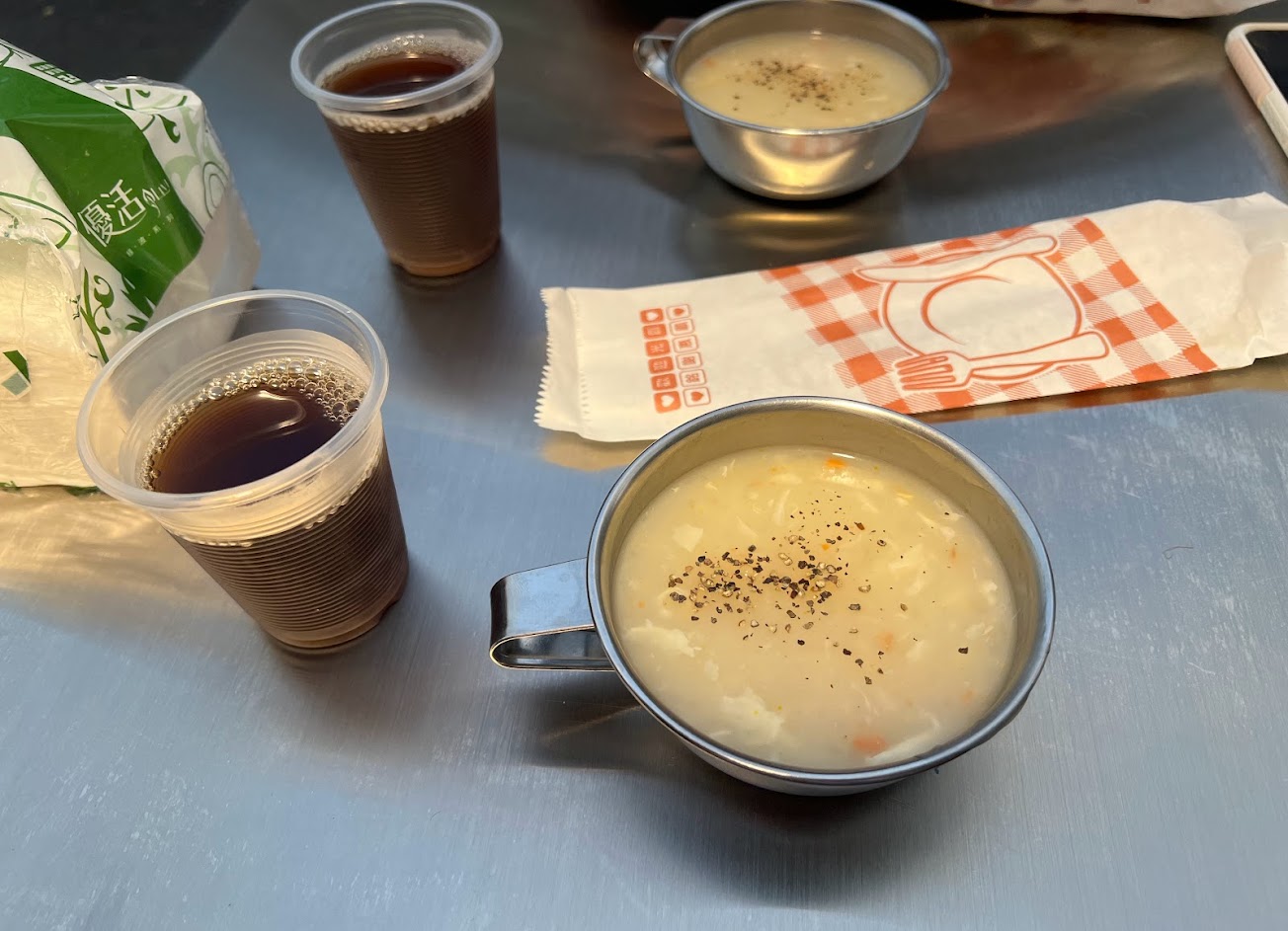 玉米濃湯濃郁好喝,可以續碗