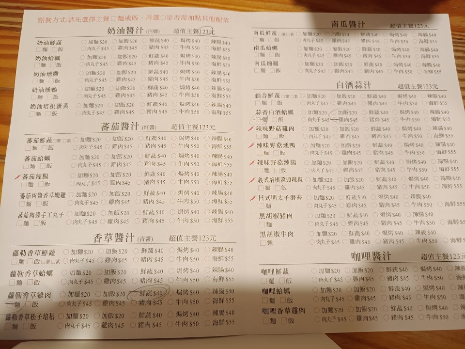 餐點123$起 有服務費
