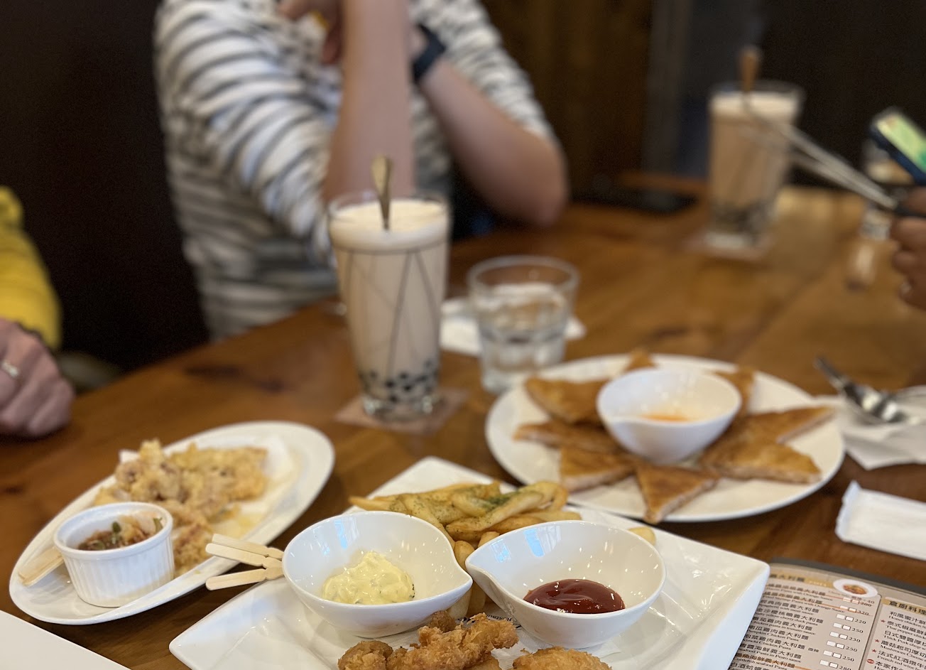 適合聚餐的地方。 義大利麵條煮的適中,還有Q彈的口感。 我吃的是泡菜雞肉義大利麵,但吃第一口的時候會有一種醬是醬、麵是麵的感覺,但可能也因為這樣不會吃到後面有點膩口。不會辣也不會覺得很鹹,味道我覺得可以。 夏威夷披薩裡面的鳳梨很大塊,而且很有汁。推薦,可以點! 雞翅也不錯吃,只是沒想到要吃最後一塊的時候,拔出了雞羽毛一根。有點嚇到。 一開始沒有發現,但就是炸物吃到後面就想要少吃一點炸麵皮就會在那邊撕,沒想到是一根羽毛?。 服務 內用 餐點類型 午餐 平均每人消費金額 $200-400 建議的餐點