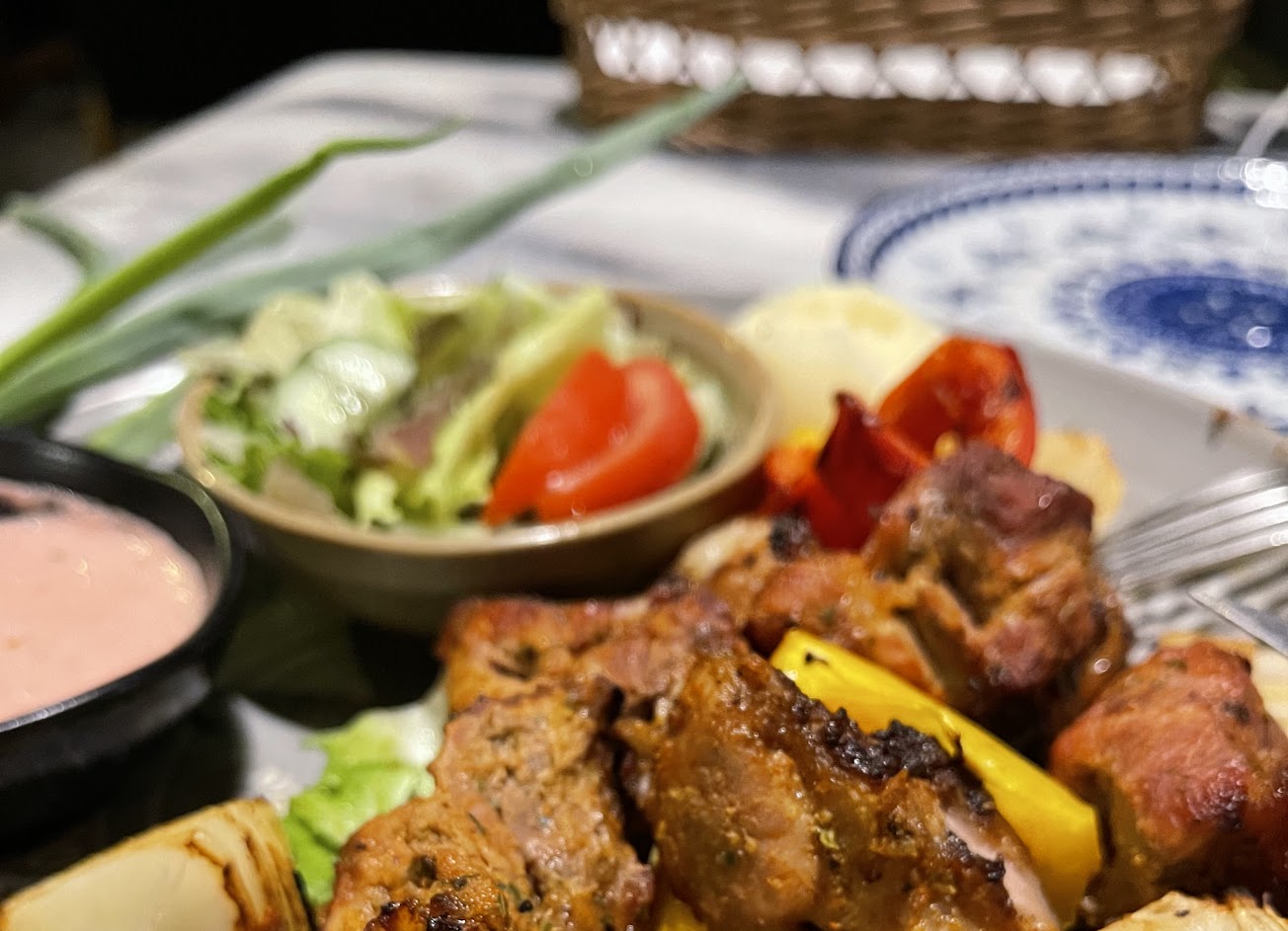 烤肉串肉的焦香味,配上酸奶番茄醬汁,