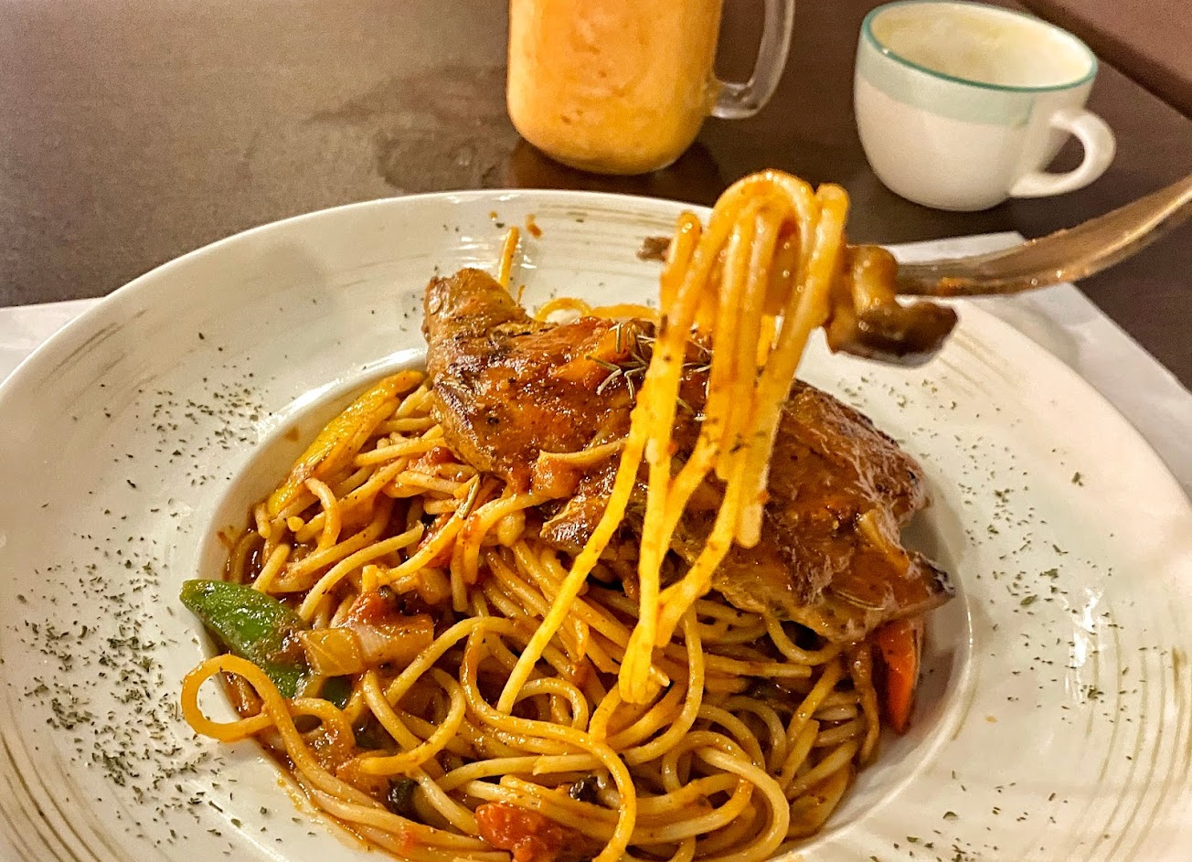 辣味蒜香海鮮義大利麵好吃,義大利麵麵條軟硬適中,辣度也是很溫和的辣,海鮮都很新鮮,好吃?烤雞因為現點現烤等了蠻久的,但沒讓我們失望,意外的超級美味,雞肉烤的香料入味肉也不柴,剩下的雞湯汁連拌飯都很好吃,下次會再光顧!建議烤雞可以先打電話去問問能不能先預約才不會久候!很推薦的美味餐廳? …