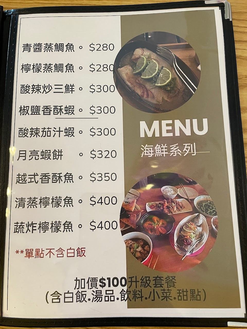 月亮 蝦餅, 越式椒麻雞, 檸檬蒸鯛魚, 綠咖哩雞, 超好吃打拋豬