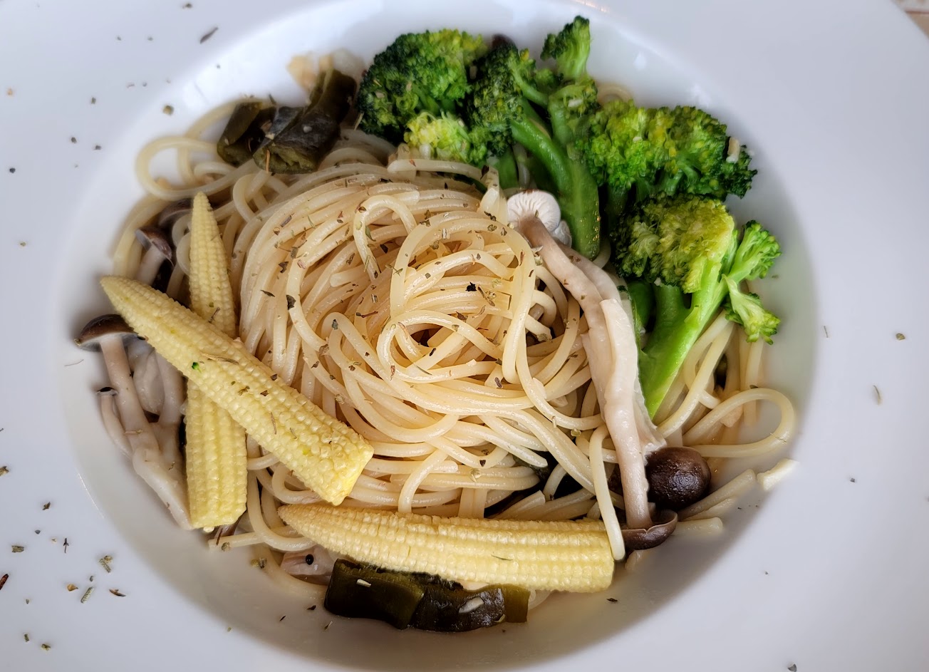餐點? 素食?菜單種類蠻多元的 也可以提供客製化的調整(麵條及燉飯的軟硬) 今天點了番茄蔬菜義大利麵 口感濃郁微酸帶一點甜味~ 蔬菜配料有玉米筍、花椰菜還有菇蠻新鮮的 今天有加購套餐~蠻喜歡蔬菜湯的~ 看似清淡但還是喝得到鮮甜味