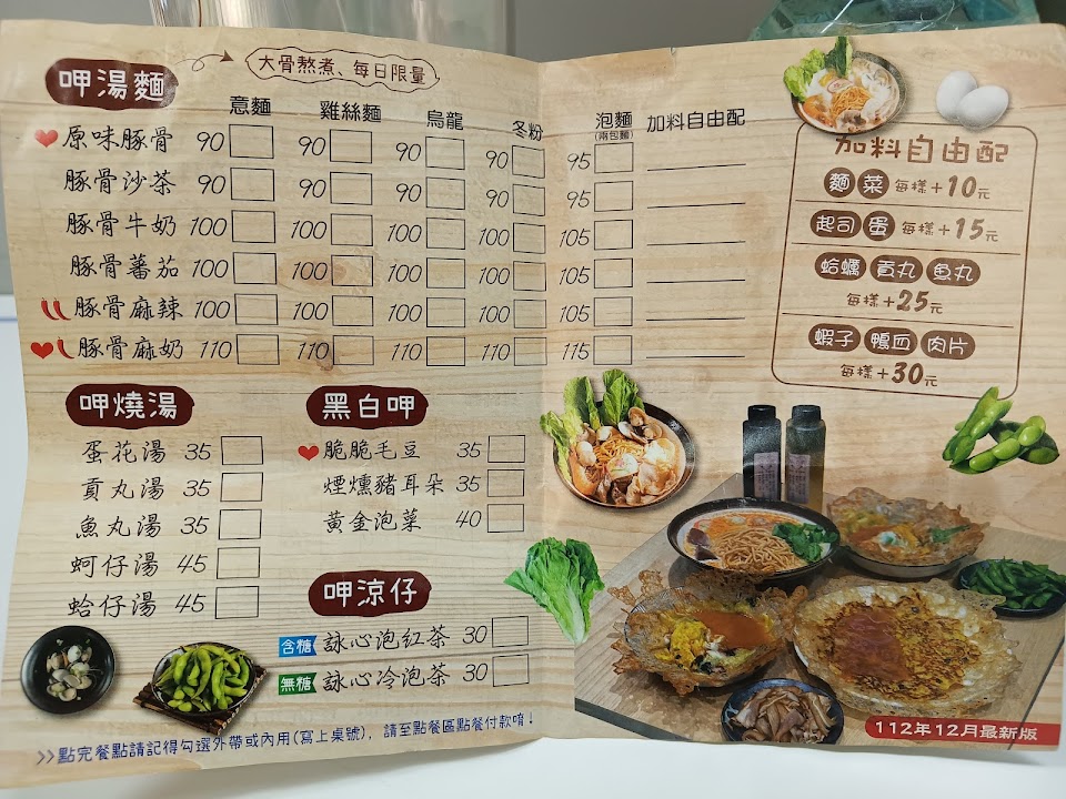 綜合蚵仔煎, 煙燻豬耳朵, 原味豚骨意麵