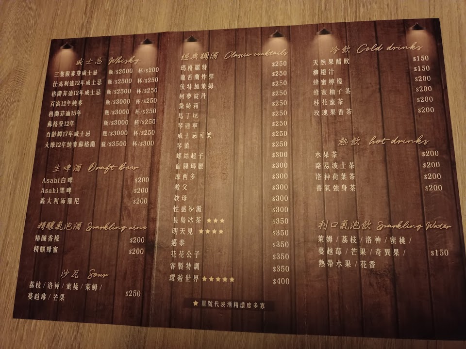 偏美式酒吧餐點略少燈光略暗,建議吃過晚餐後前行。