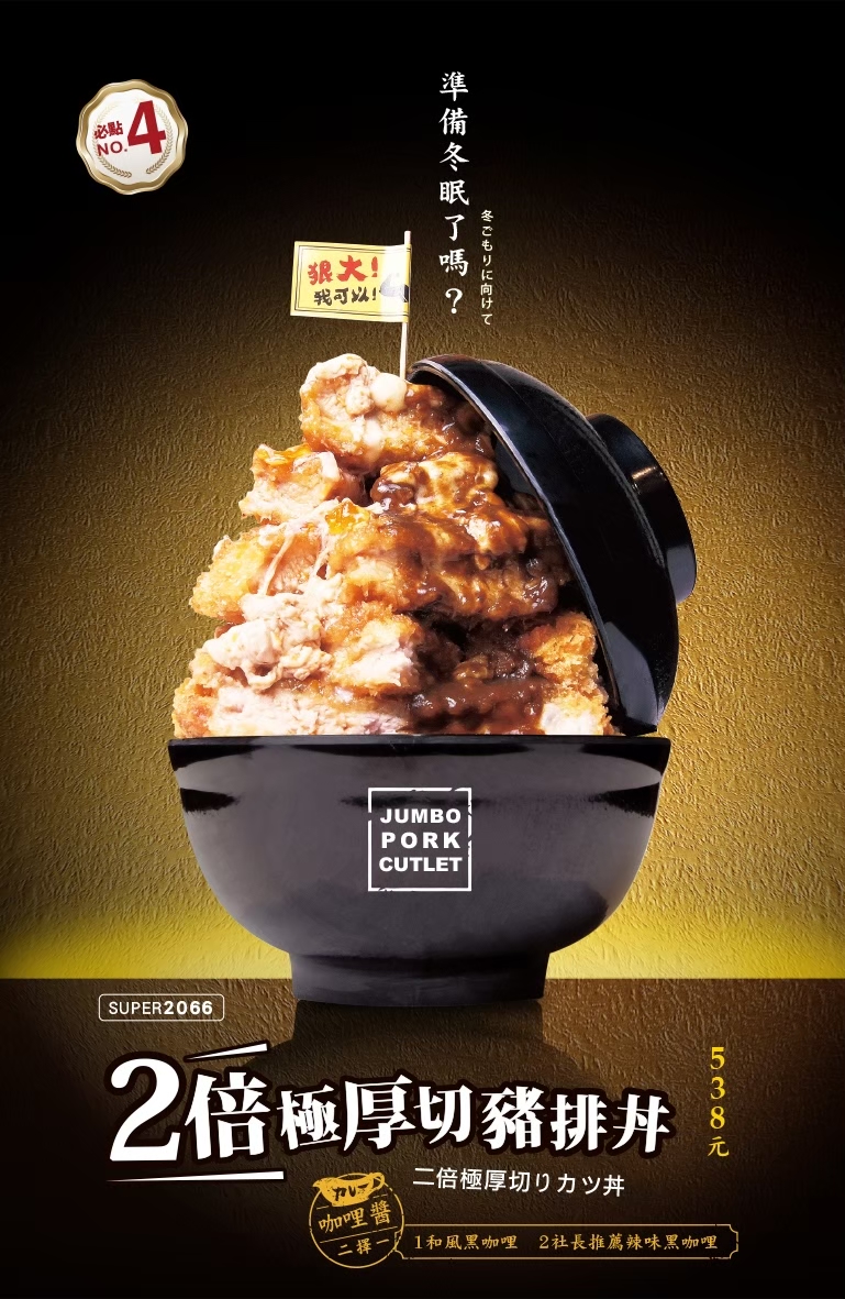 兩倍極厚切豬排丼,豬排疊在飯上超多又厚,可以滿足想大口吃肉的滿足感