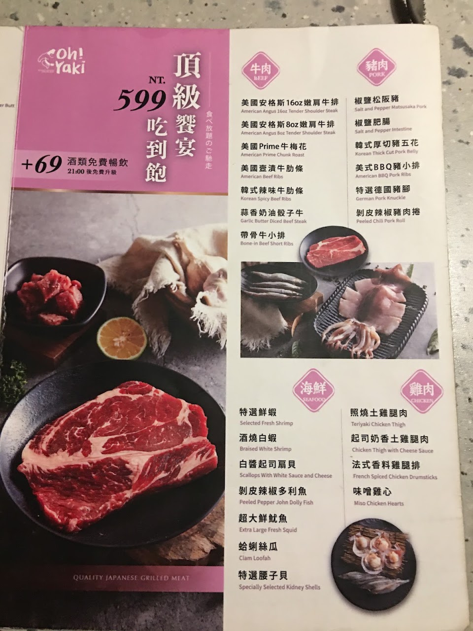 2024最新在地推薦餐廳的菜單_Oh ! Yaki 精緻燒肉吃到飽-高雄中山店的菜單、圖片