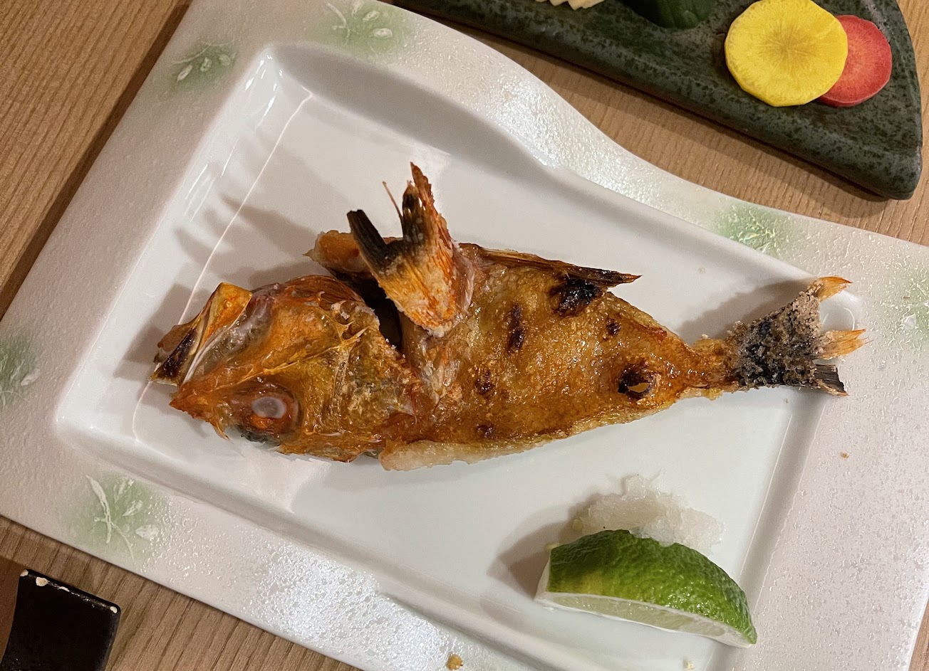 我有點烤魚,真的非常香皮也很酥脆,吃不完還可以打包,利用魚骨+海帶淋上熱湯又是一道菜色。