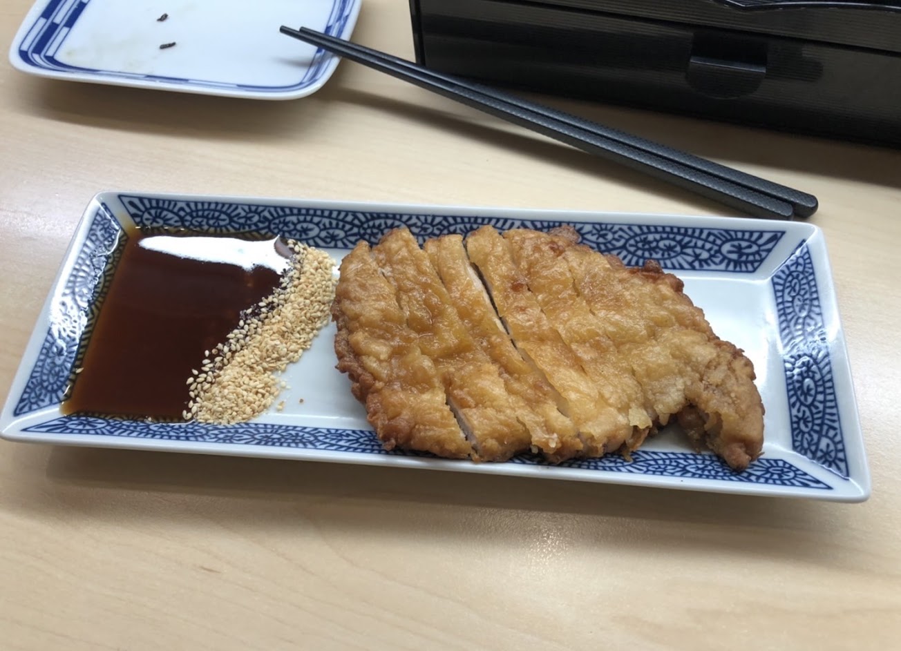 唐揚雞塊:有附檸檬,可以搭配七味粉與胡椒,雞肉不柴且非常入味,是很值得嘗試的加點選項