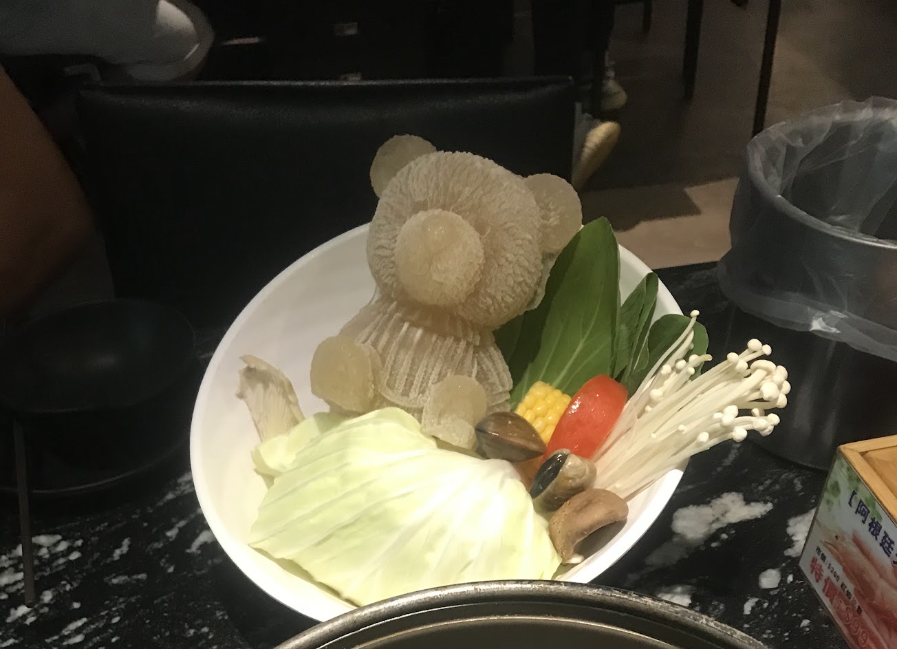 有些肉品很雷 要每樣吃過才知道 他的湯底好喝 他的小熊是湯底 很有創意?? …
