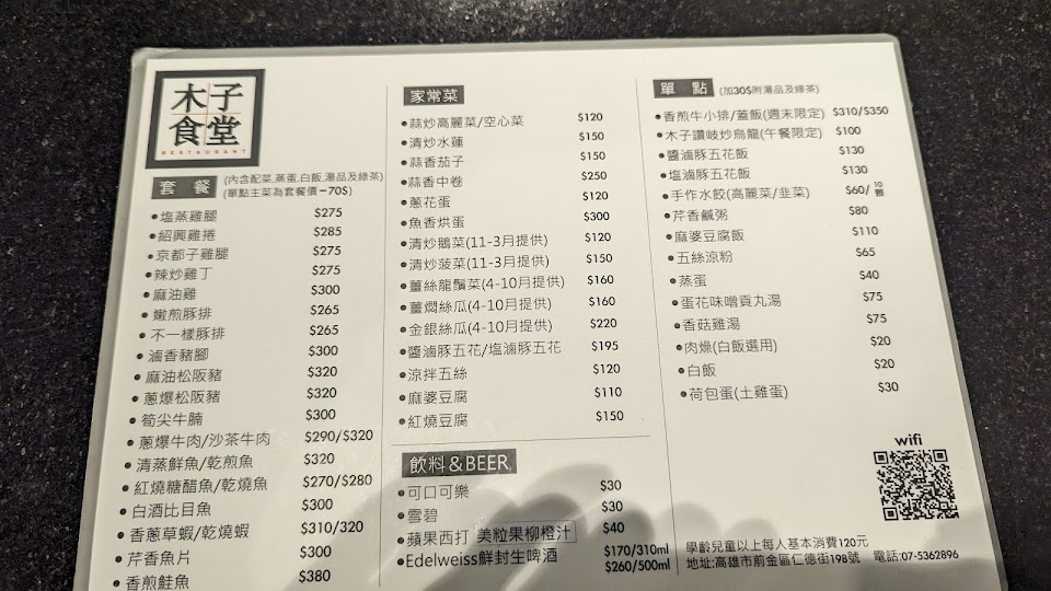 裝潢很有品味質感的#木子食堂 舊店去用餐過一次 映像蠻好的!! 換到仁德街後第一次來用餐 除了口味與既定的好感映像翻車外 等候時間蠻久的? (很想建議店家應該入座前先告知) – 這次餐點不知道是不是挑錯 主食紅燒糖醋魚、京都子雞腿 口味蠻重全都偏鹹???(還是我老了) – 京都子雞腿是帶點蕃茄醬的酸鹹 雞腿肉口感蠻彈嫩的 但扒飯吃還是覺得太鹹了? – 紅燒糖醋魚非常有醬香 是家常味飄香那種等級? 可是醬汁也是蠻鹹的 是醬油的死鹹感 淋著飯吃還算合適 – 紅燒糖醋魚 $270 京都子雞腿 $275 清炒水蓮 $150 鹽滷豚五花 $150 – 服務 內用 餐點類型 晚餐 平均每人消費金額 $200-400 餐點:3 服務:3 氣氛:3 建議的餐點 清炒水蓮
