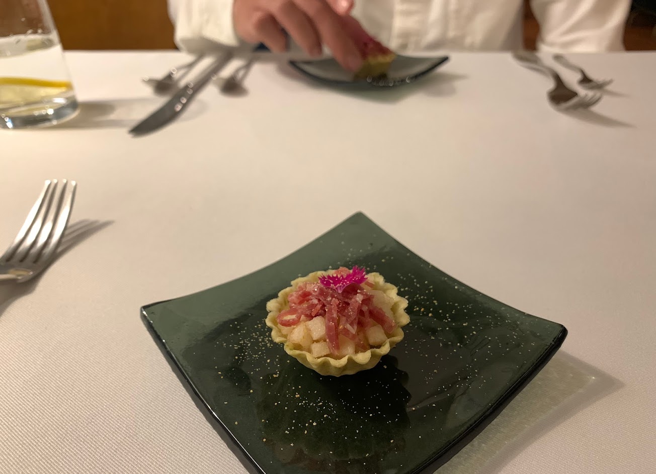 令人印象最深刻的莫過於第一道開胃小點 濃濃的海味與秋天氣息在嘴裡綻放 就像顆小型的海鮮炸彈