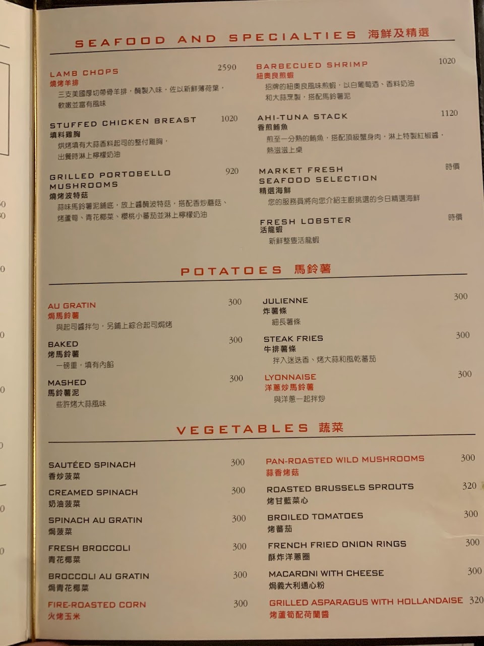 特別喜歡菲力牛排跟奶油菠菜。