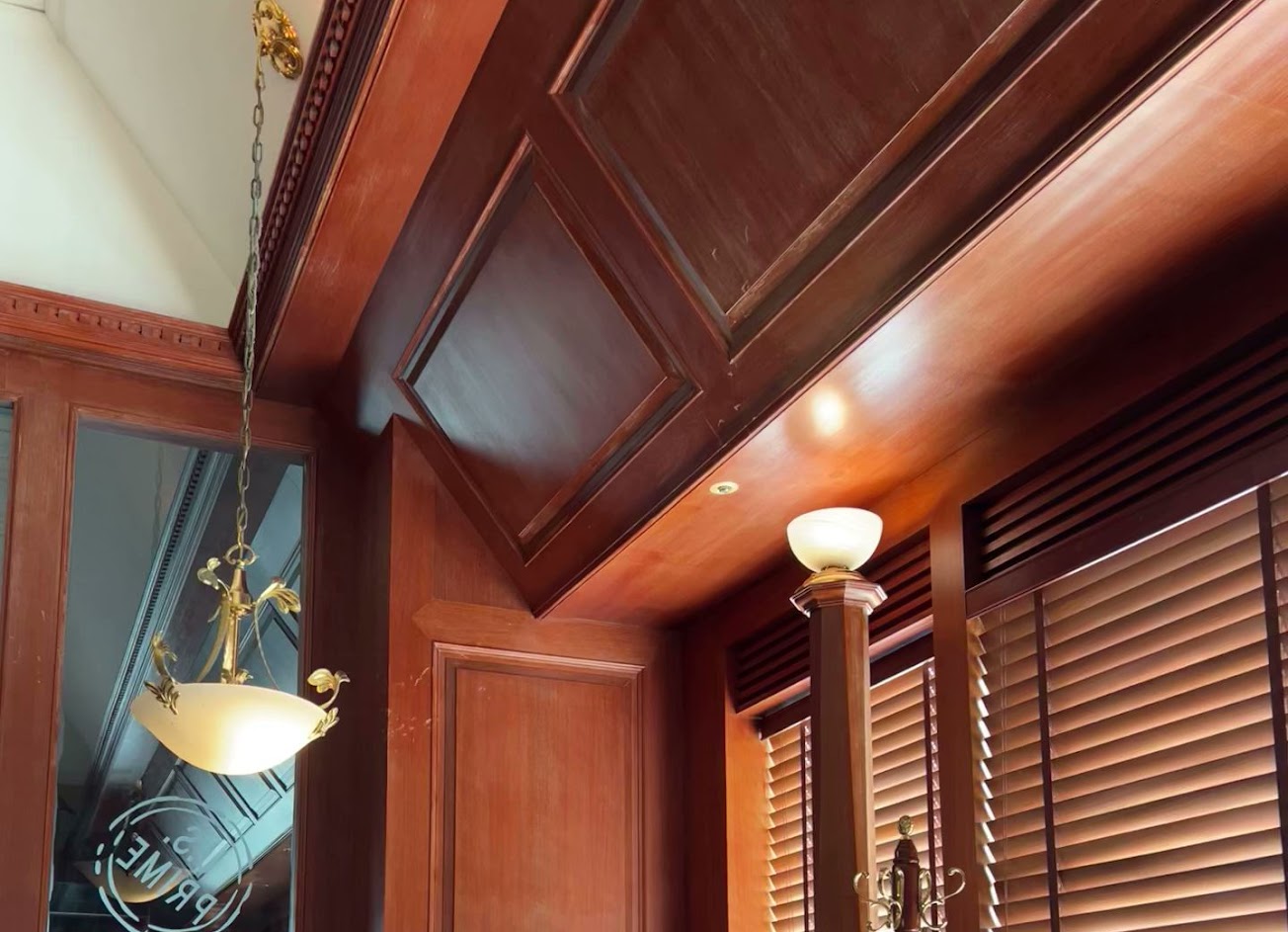 位在金融大樓頂樓,從進大樓到搭電梯都不會有要到高級餐廳用餐的感覺,直到出電梯看到深棕色的木門,進門後店內的氛圍是非常高雅,不是浮誇的裝飾,但馬上會知道這是一間高級餐廳的氛圍