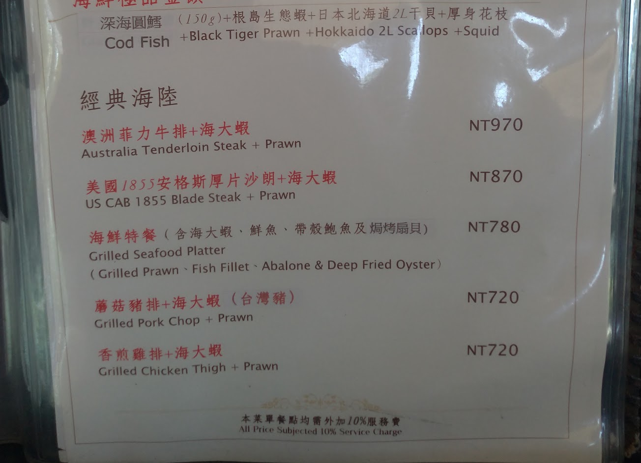 朋友說是高雄第一家西餐廳。老饕牛排好吃。個人點了豪華海陸餐,焗烤龍蝦搭配菲力牛排。前菜,濃湯,麵包,牛排不錯,但焗烤龍蝦還好,海鮮作法上還是比較喜歡較少的調味去表現其鮮美。