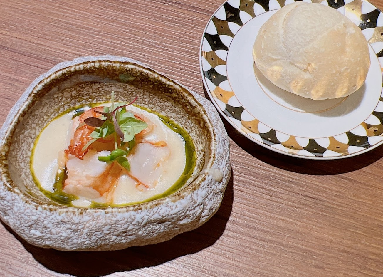 蝦子非常彈牙,馬鈴薯泥更令人驚豔,口感極為綿密,更不用說調味一樣多層次,沾麵包吃更可以把麵包的香氣帶出