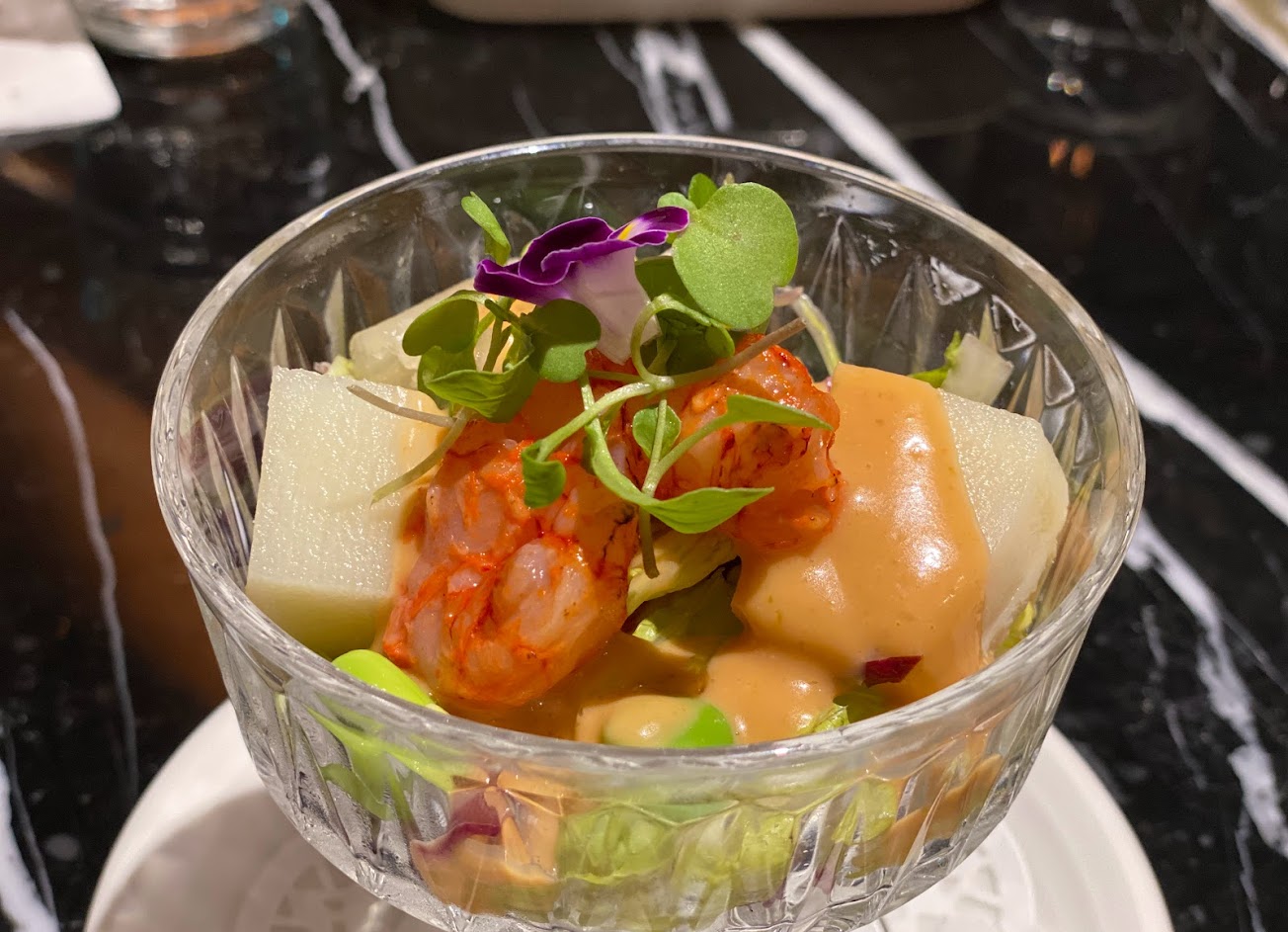 炙燒胭脂蝦佐煙燻威士忌雞尾酒醬汁