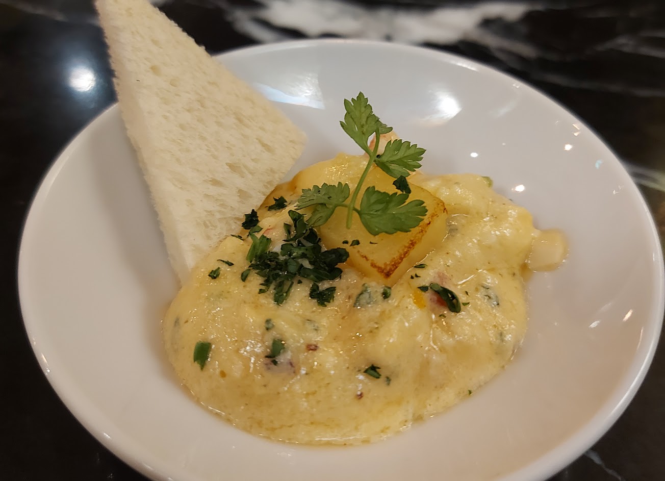 麵包配上濃郁的醬汁,最適合拿來當前菜~ 而且醬汁裡面還有很多海鮮,像是蝦仁、花枝等,真材實料