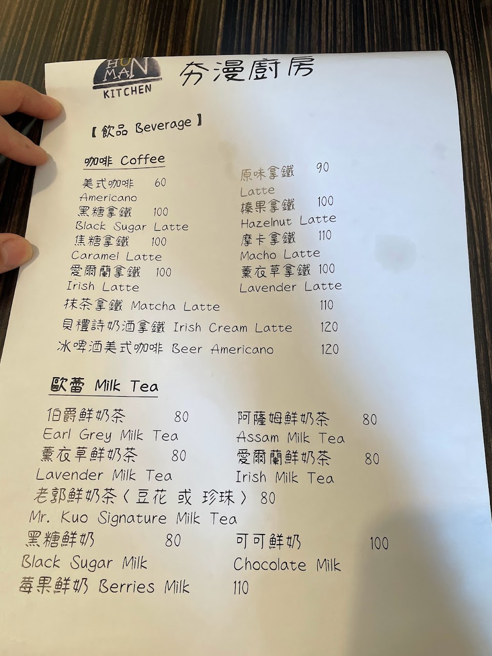 2024最新在地推薦餐廳的菜單_夯漫廚房/高雄義大利麵/高雄美食/前金美食/高雄coffee/高雄燉飯的菜單、圖片