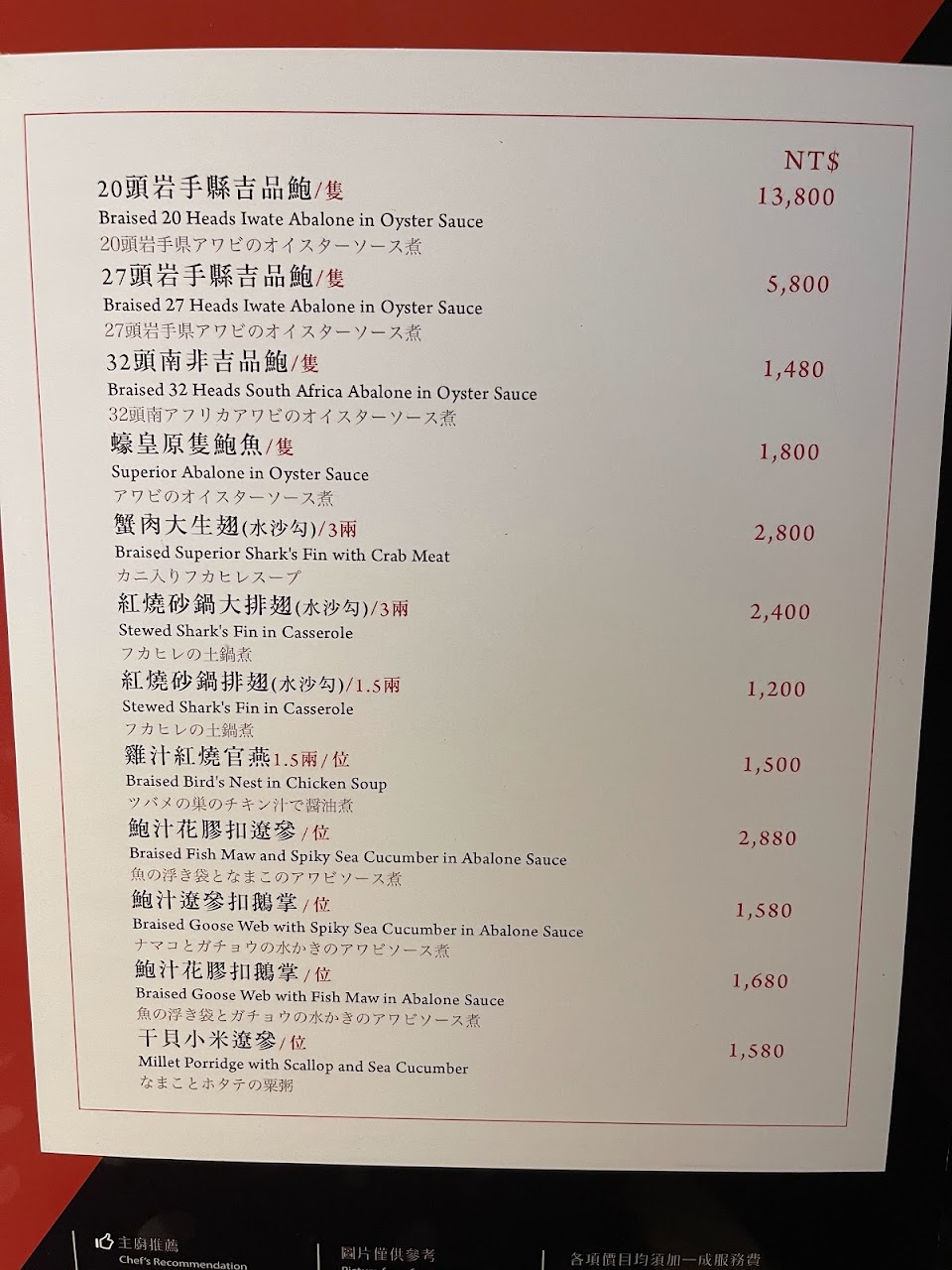 鵝掌鮑魚好吃口感很嫩也很Q,只有花雕雞肉有點柴和甜品紅豆湯裡面有陳皮吃不太習慣?