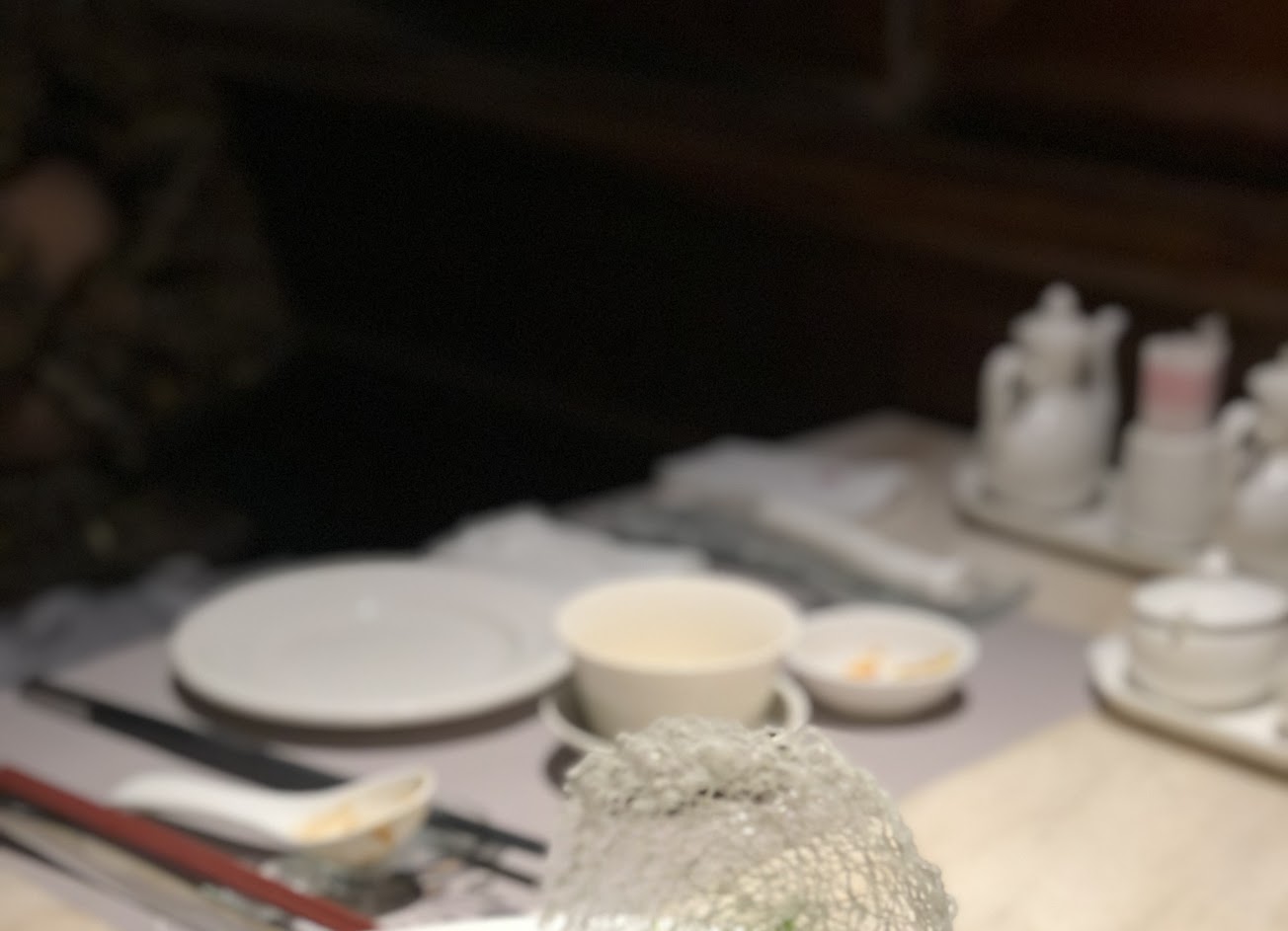 餐前小食變的比較普通三樣小菜涼拌黑木耳、醃漬小番茄、小魚乾,跟以前1500元就能吃到的有花瓣型狀的醃燻鮭魚,精緻度差很多,這次是點2500的套餐比較有記憶點的是蠔皇四頭鮑魚扣鵝掌、上湯盧筍、還有杏汁燉桃胶,是好吃的但炒飯變少了,一餐吃下來沒有到飽….. 餐點:3 服務:3 氣氛:4