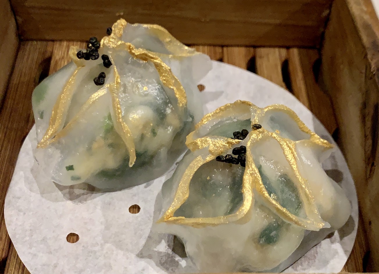 在漢來飯店的12樓 坐電梯到11樓走一層樓樓梯或再轉電梯。 這裡價位比一般的飯店廣式茶樓貴了約二成, 服務跟用餐環境絕對是五星 , 資深的服務人員不管是推薦菜跟預估客人的用餐份量都是專業中的專業 。但是食物的做法跟材料扣掉了一星。 本來要扣掉兩星的但是蘿蔔糕加了回來 這也是今天點的四道港點裡面雖偏甜但唯一較滿意的。 有金箔的蝦餃 一顆一百多元尺寸是夠大但是夾起來皮就散了, 冷凍再回蒸的通常會有這個現象, 底下貼了一片薄紅蘿蔔片。 所有港點裡的蝦肉都不是新鮮剝的蝦仁 ,而是經過“處理”過的, 所以吃起來有脆脆的口感但是完全沒有蝦的鮮味( 好懷念已以前在高雄市青年路已關了的北平天福樓, 早上開店前經過他們門口有時會看到在騎樓下 剝蝦備蝦仁,唉, 再也吃不到他們純蛋白炒的芙蓉蝦仁了), 蝦餃裡面豬油的味道蓋過了其它, 網紅腸粉,裡面包的 炸的碎米粉完全沒有甩油 非常的油,而且油味重到也蓋過了蝦餡和米皮, 鮑魚燒賣的小九孔鮑好吃, 但是我第一次吃到這麼粗的燒賣餡 有大塊的蝦碎肉只是好重的粉跟魚漿, 加了魚漿的燒賣餡不是應該是冷凍食品降低成本的等級嗎, 至於茶是不能選品項的,其他的評論也有提到茶是泡到幾乎沒有味道的號稱阿里山金萱, 好一點等級的越南茶也會比這個好10倍吧, 有沒有好的 ?辣椒油不錯不會很辣也香, 醬料都在桌上不用請服務生另外拿 包廂還有服務鈴很方便, 下載APP有優惠折扣所以應該還是會再去,下次再試試看別的品項。