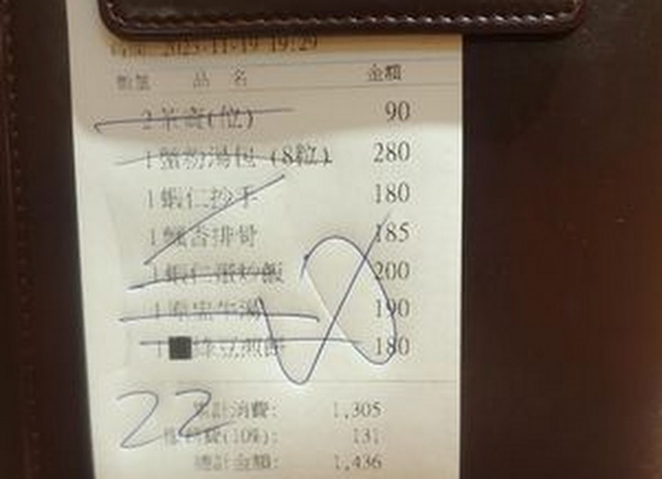 今天,11月19日,我和朋友去一家餐廳吃飯。 有一位來自某處的越南服務生(不是一開始為我服務的那個)給了我這樣的帳單! 帳單已經這樣花掉,當我要求更換新帳單時,卻沒有花掉! 她告訴我, 如果要新的我必須親自行去櫃檯那裡拿。 請問這樣的態度和服務值得我們付10%的服務費嗎? 事情發生時,管理人都在那邊並沒有人出來道歉,或是她本人也沒有向我們道歉。 就值得得到顧客如此不專業的品質與服務態度嗎? 向客人道歉有那麼難嗎?