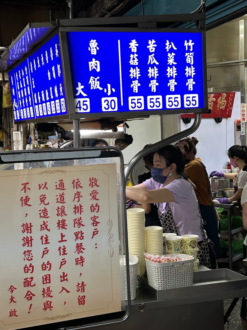 排隊約20分鐘,既然都排隊了,魯肉飯建議點大碗的(45元),不會過大。小碗30元。