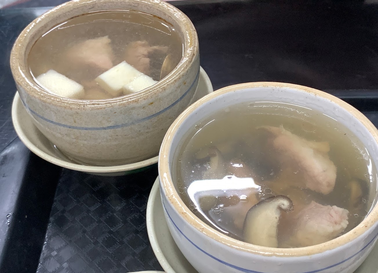 扒菜排骨湯香氣十足,香菇排骨湯加了蒜頭一起燉也別具風味。