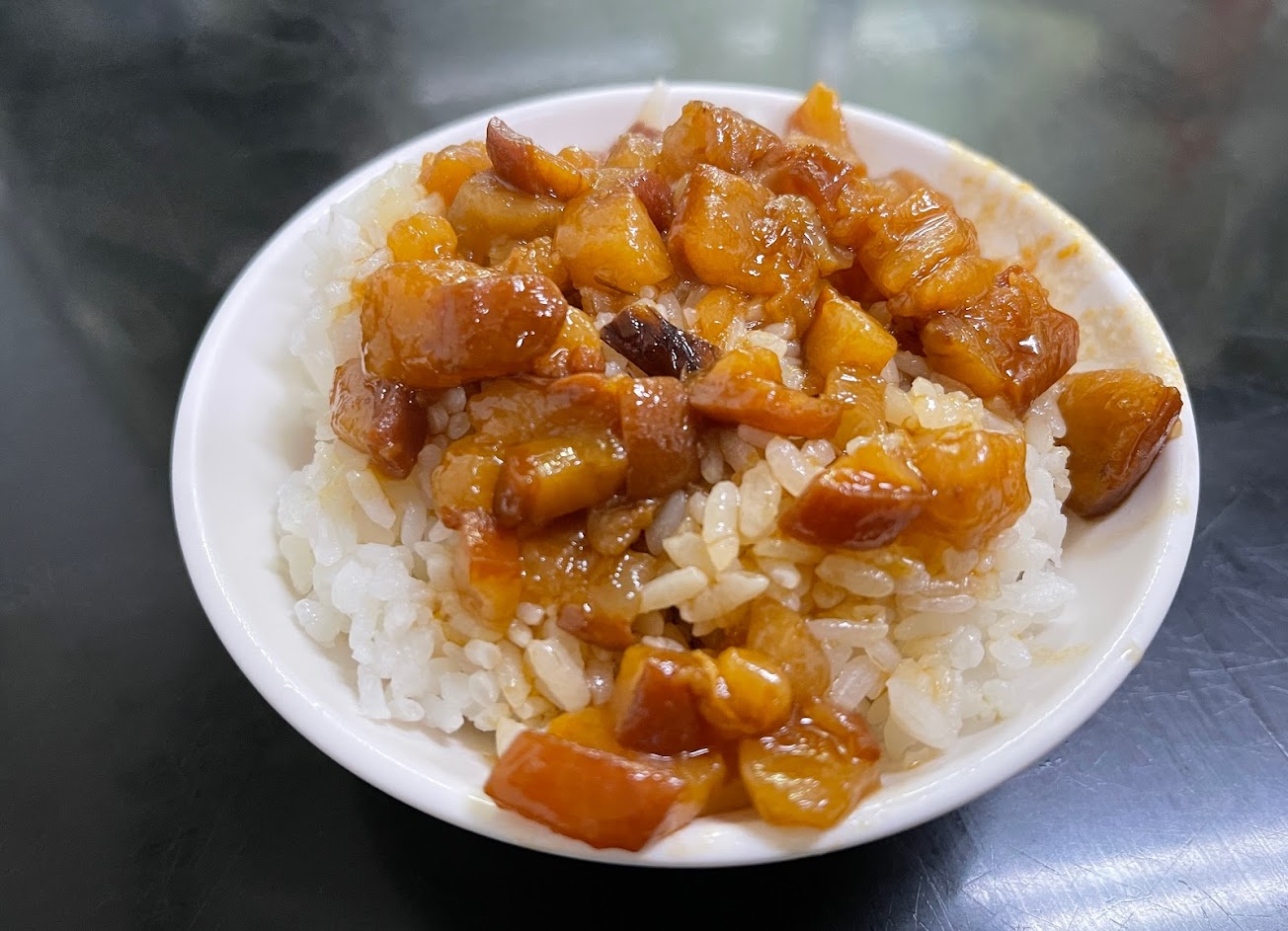 這是肥肉愛好者絕對不可以錯過的滷肉飯;肥而不膩的滷汁搭上粒粒分明的白飯,完全不會膩口,加點一顆滷蛋再把蛋黃攪進去後又有另一種風味。