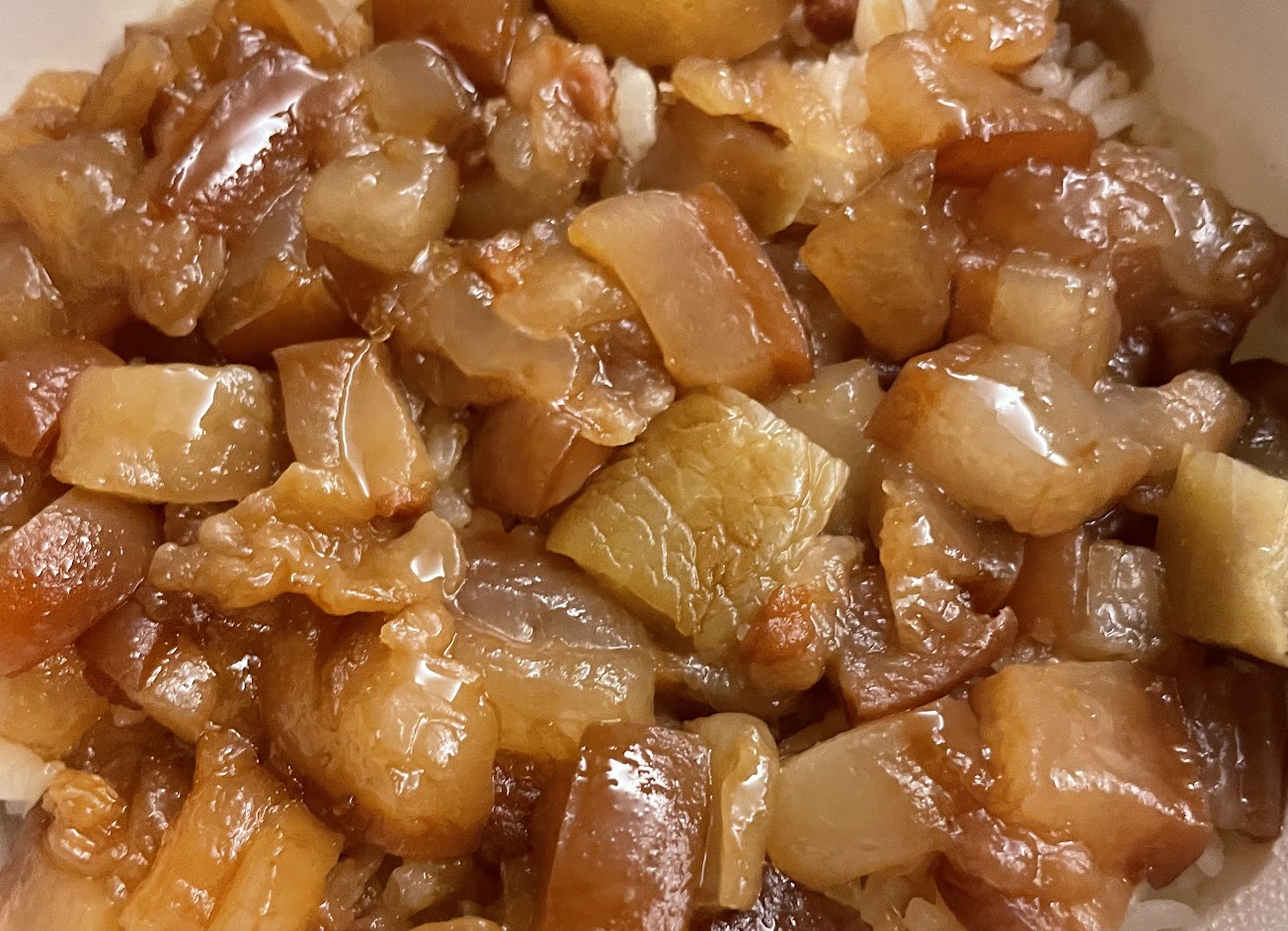 切得較大塊的肥肉簡直肉汁炸彈,一咬就噴汁。鹹淡適中,米粒煮得好。
