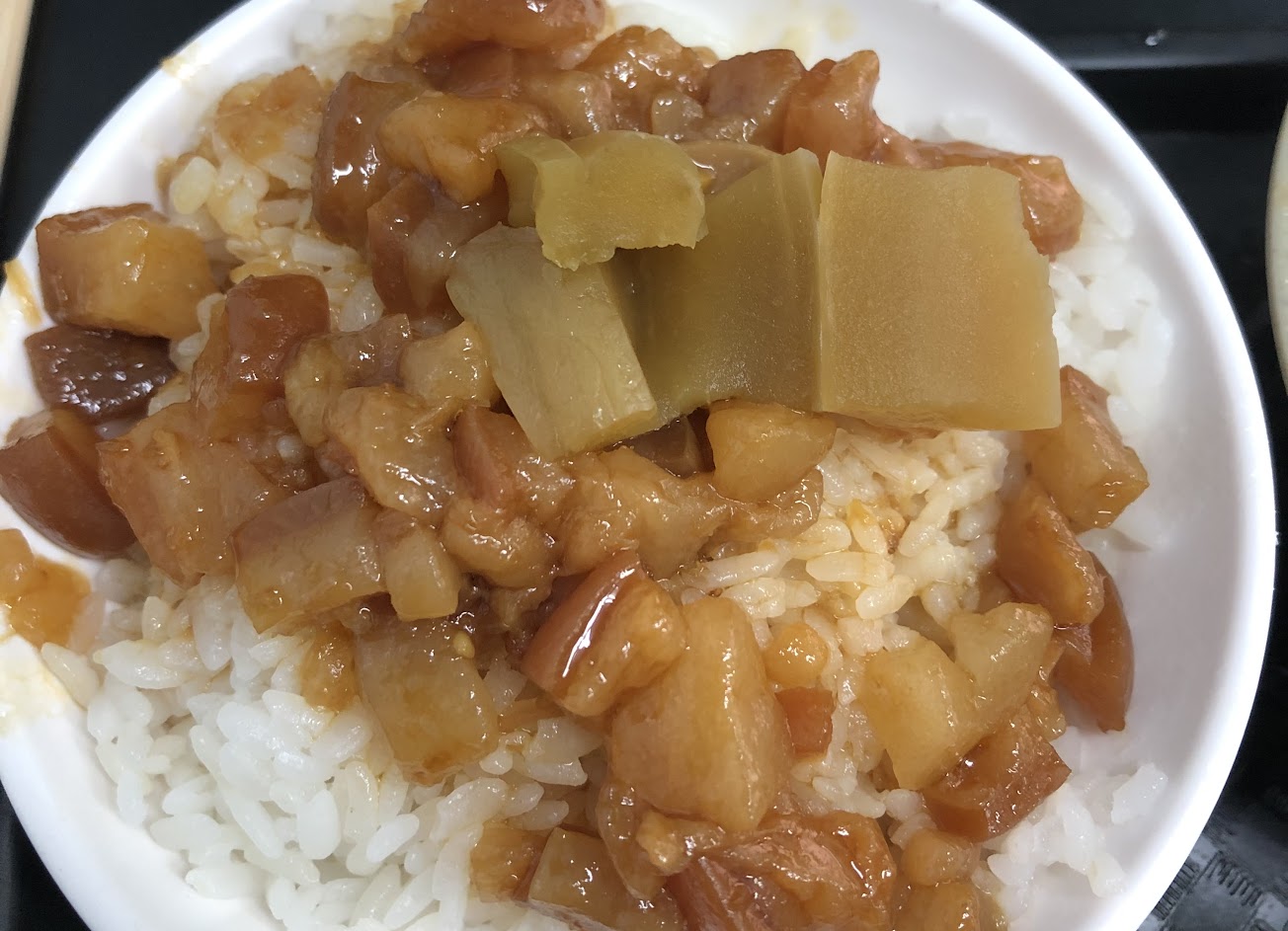 看到油亮亮的肉燥淋在白飯上讓人不禁胃口大開,油脂豐富卻不油膩,肥肉軟綿好吃,竟有莫名的魔力想再多續一碗