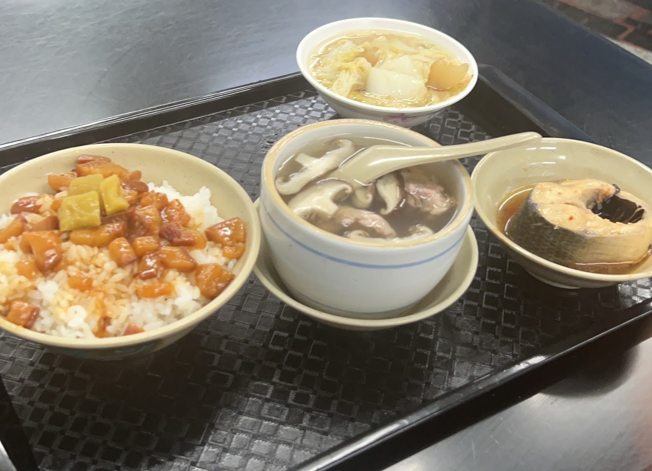 滷肉飯對喜愛的肥油黏口的人來說ok,湯也不錯,小菜很一般屬清淡口味、魚肚(魚塊)肉質偏硬干。