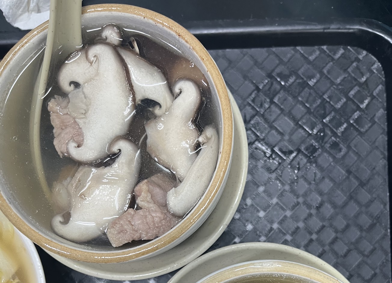 湯品也是「今大」的重點特色,一定要點碗湯來配魯肉飯。湯碗非常燙,要小心。香菇排骨湯頭喝起來很清香不油。