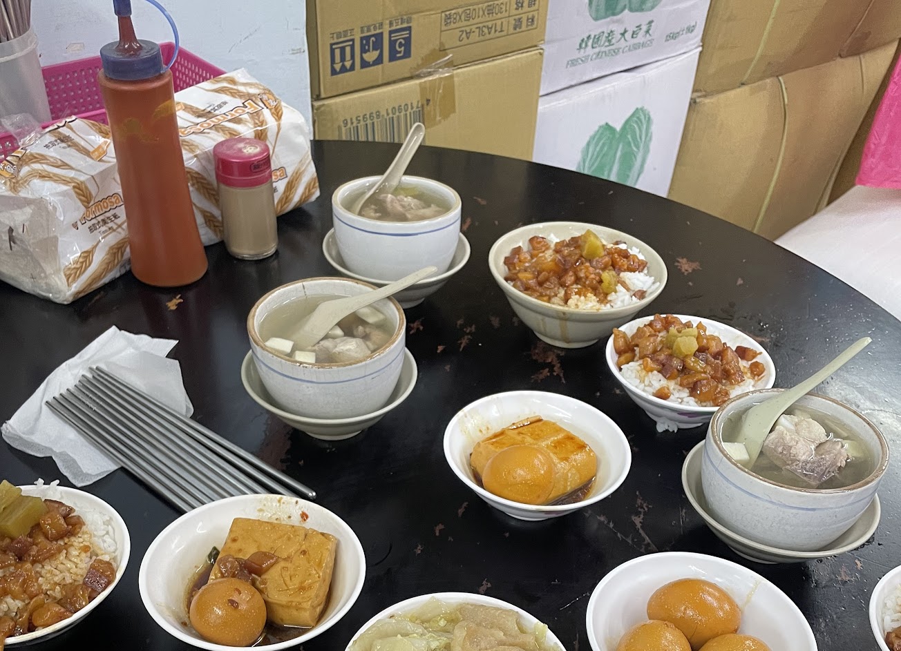 滷肉飯不油不膩帶點微微的膠脂入口即化,好吃?竹筍排骨湯也很好喝,湯裡面有蛤蠣跟竹筍的鮮甜,可惜太小一碗..滷豆腐如果能再滷久一點就更好吃?,應該生意是太好有點來不及入味…筍絲、白菜滷就一般沒什麼太驚艷的感覺..不難吃啦就一般般