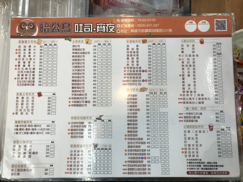 2024最新在地推薦餐廳的菜單_暗公鳥吐司、宵夜「總店」的菜單、圖片