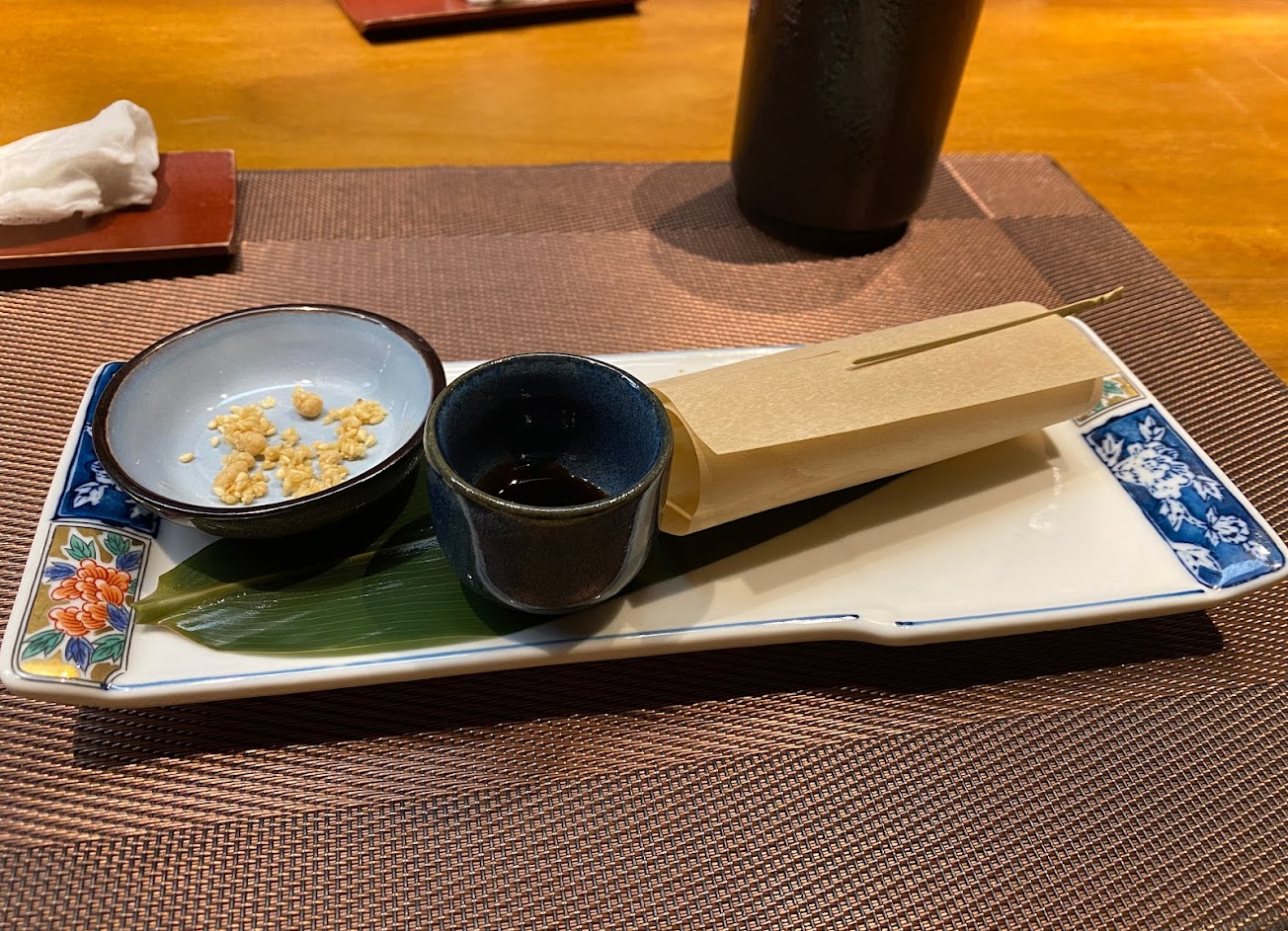 有別於一般日本料理的特色,更多的是日義式的融合料理,而最讓我驚艷的是後面的那道甜品「抹茶羊羹」,可以濃厚的感受到抹茶的味道,而裡頭的奶香又讓抹茶味經久不散,最後喝一口抹茶畫龍點睛,正中抹茶的主題。