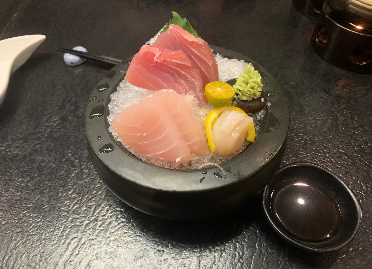 上菜時覺得擺盤不錯,近看發現擺盤上一點也不細心,碗?的邊緣還有水(應該是冰塊導致),頓時像是掉價了,果不其然生魚片完全不行,說不上不新鮮,但味道一點也不怎麼樣,唯一還說得上是生花枝+魚卵,無論味道和口感都讓人喜愛