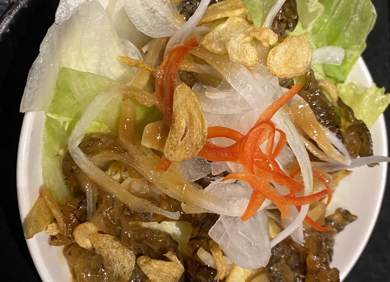 極上黑毛黑牛也是入口即化,油花分佈很美,建議馬上烤完,不然石板會烤焦