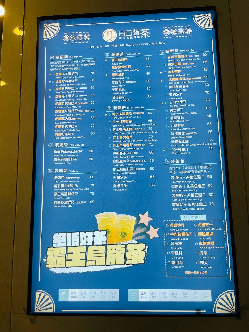 2024最新在地推薦餐廳的菜單_日日裝茶 – 中正南門店的菜單、圖片