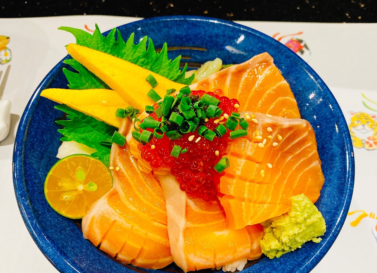 可以近距離欣賞主廚(老闆)的烹飪技巧(不推薦趕時間的人,因為料理都是現點現做),本日品嚐了鮭魚親子丼飯及生魚片,鮭魚親子丼飯中有好幾種配菜(醃漬章魚、蘿蔔、山藥、薑片、玉子燒、松露醬….等)在品嚐中增添許多樂趣,另外生魚片中的白身魚及鮪魚中腹都富含油脂,且鮪魚中腹經過主廚特別挑選並經過特殊方式熟成,入口即化。