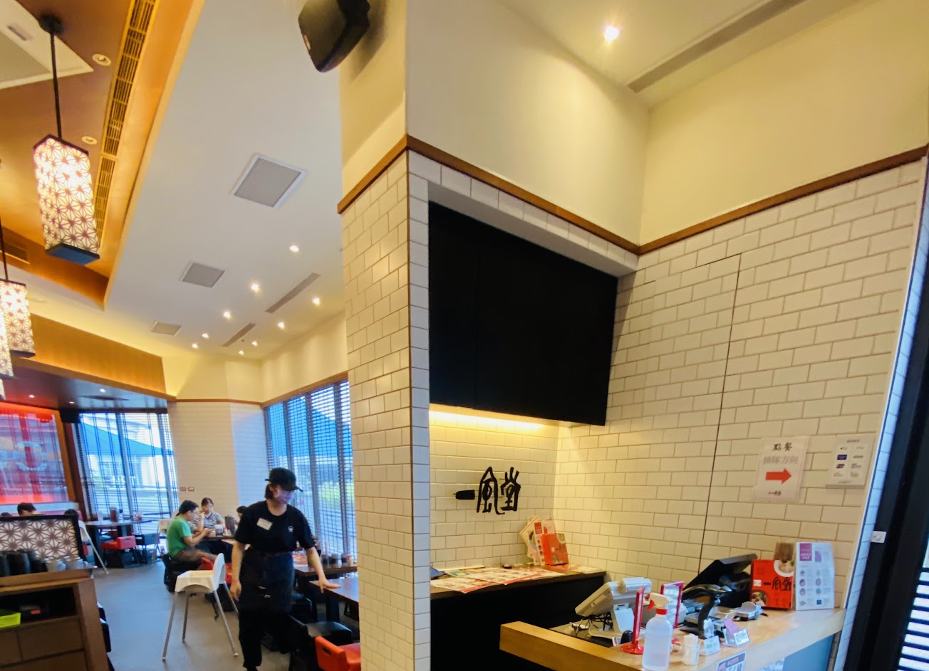 位於三樓陽台樓梯旁,不仔細看可能會錯過。第一次來品嚐的話建議點「白丸元味」,細麵濃醇豚骨湯,是一風堂的原始經典之作。「赤丸新味」,溫潤濃郁的豚骨湯頭,細麵配上齒頰留香的軟嫩叉燒,加上一風堂特製辛味噌,味道稍微強烈。「大名家系豚骨」以豚骨湯與雞白湯雙湯頭為基底,加入特製醬油基礎汁的豚骨醬油拉麵,採用口感紮實的中粗麵,搭配菠菜、海苔等配料而成。「唐揚雞」外皮酥脆,肉質扎實有咬勁,可依個人喜好淋上檸檬汁,或者沾上日式美乃滋增加風味。因為餃類在台灣飲食競爭激烈,「日式煎餃」相較之下並不突出。