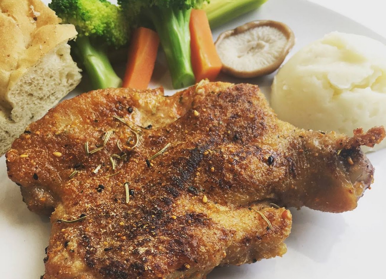 肉質真的蠻嫩的,配菜的花椰菜與玉米筍也很新鮮不會太過軟爛;店家服務很親切,環境位置舒適,二樓也有大螢幕可看電視