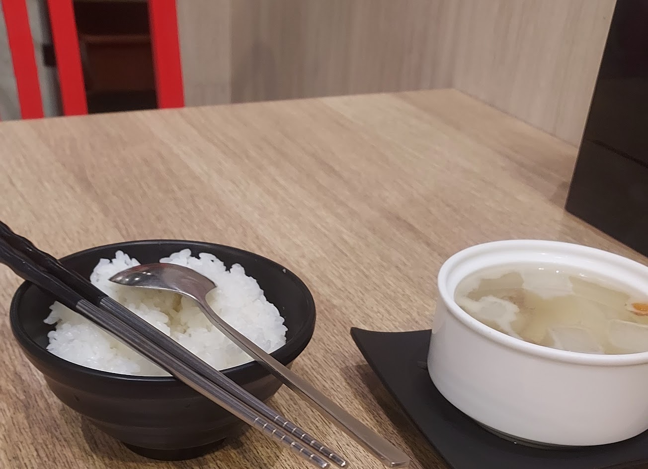 蔬菜的量也很少,湯品的雞肉都是皮,服務人員趕著接待客人與其他工作,說話極快也沒很清楚