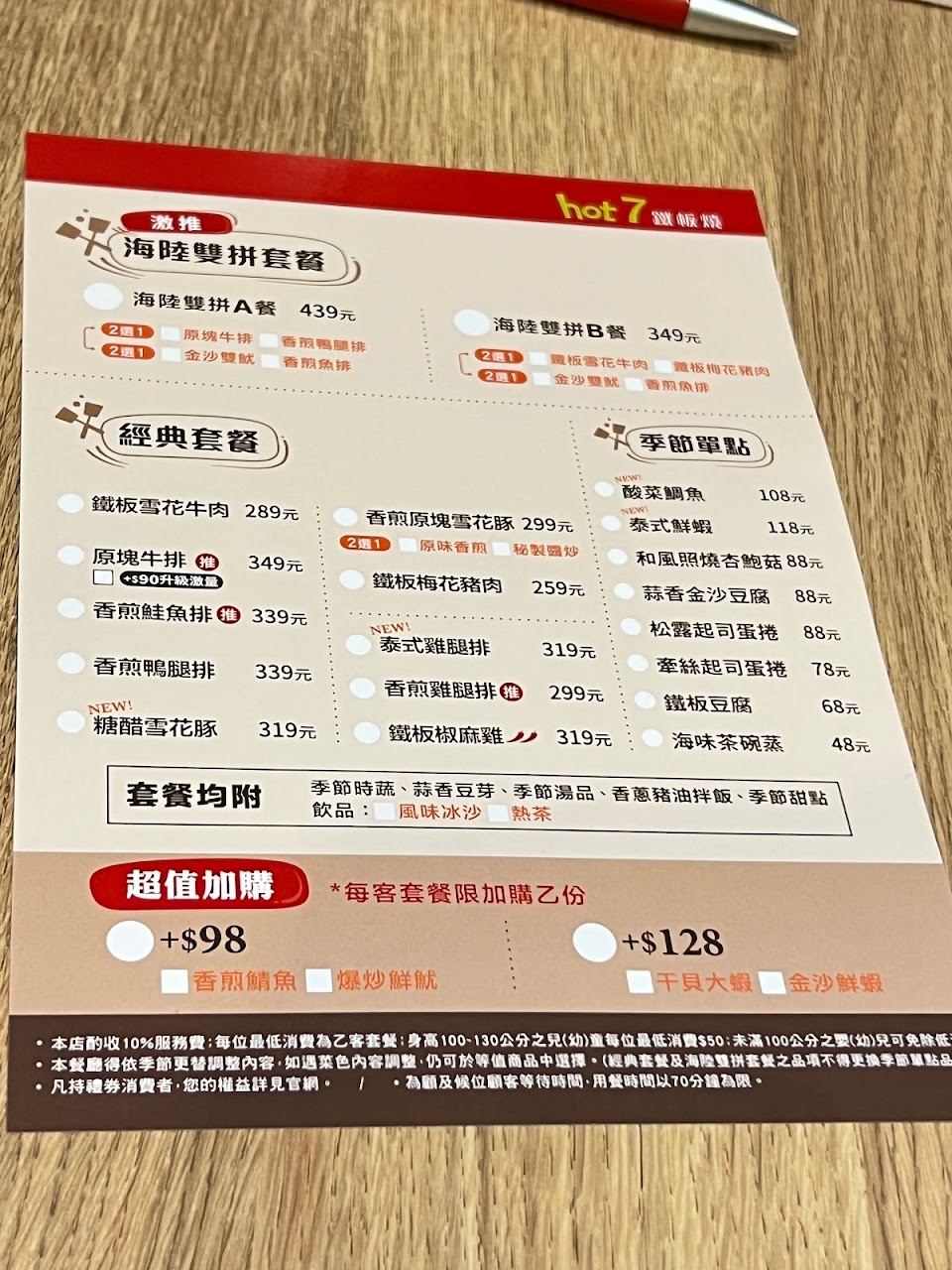 2024最新在地推薦餐廳的菜單_hot 7鐵板燒 高雄夢時代店的菜單、圖片