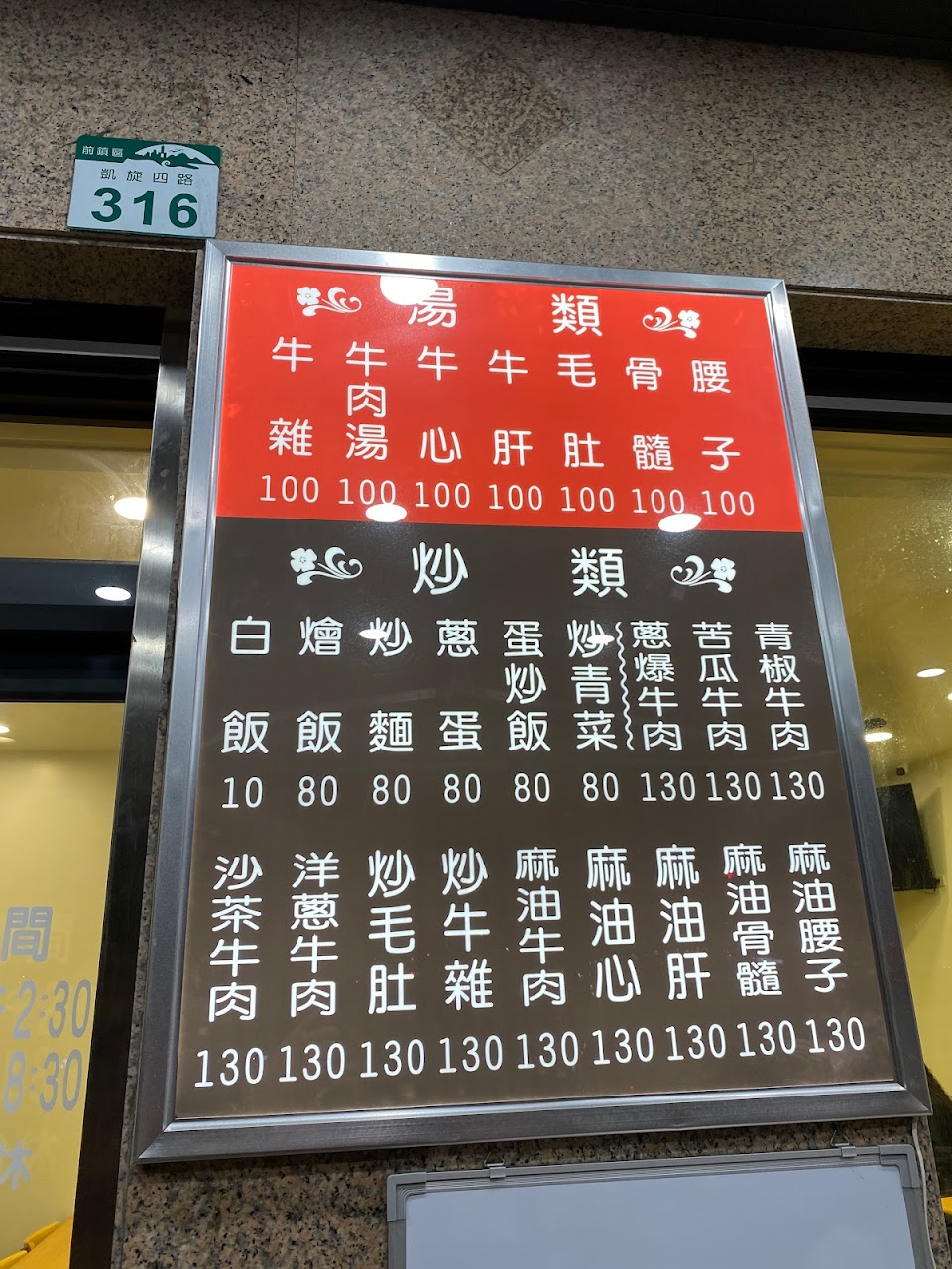 蔥爆牛、牛雜湯,現在移址到凱旋四路