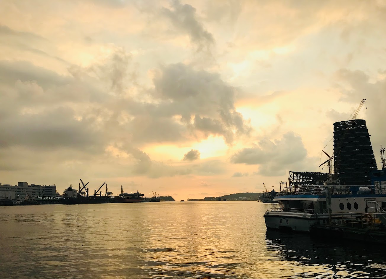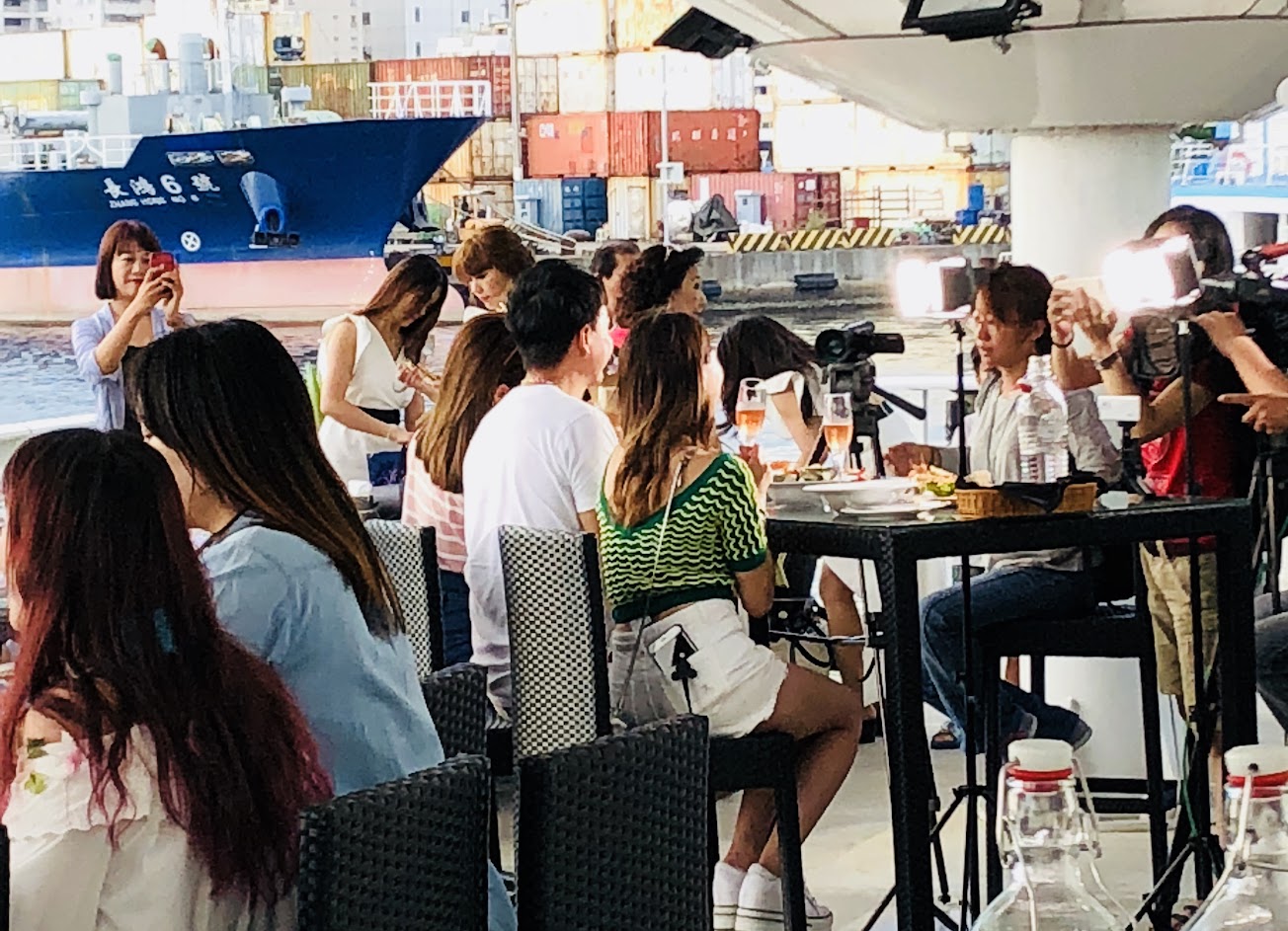 在高雄的遊艇碼頭,喝著啤酒佐以生蠔,