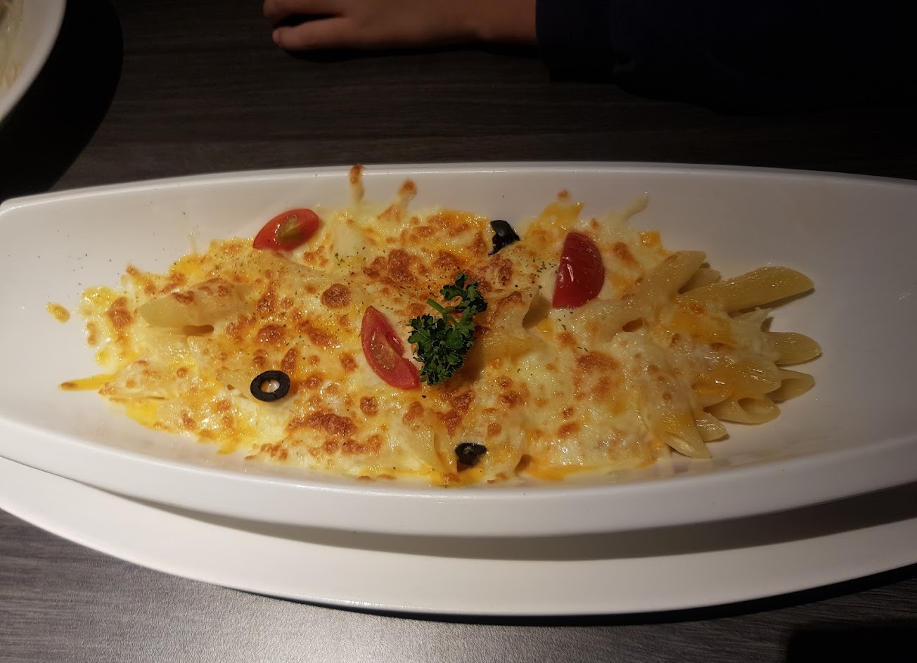 說真的很難吃,尤其是焗烤燉飯,根本沒有味道,比便宜的義大利餐廳還難吃,且還吃到2根頭髮,不過雞米花跟飲料都蠻好喝的
