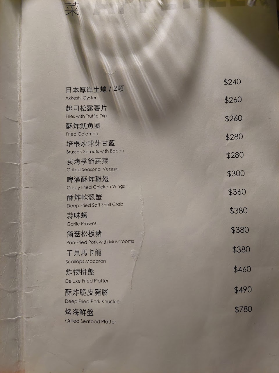原本以為炸物分量是少少一盤,所以還加點了其他東西,但沒想到端上來這麼大盤,物超所值很好吃,頂樓風景很好,夕陽很美,氣氛佳,但風有點大,到晚上漸漸有點冷,怕冷的人坐樓下就可以了?附近就有一個很大的免費停車場,還有一片草坪和公園,很適合但寵物去放風??