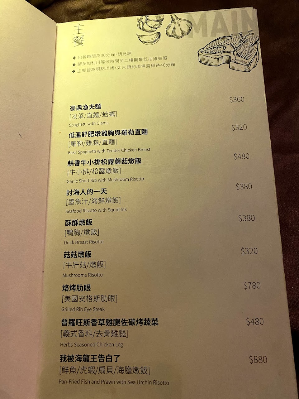 蒜香牛小排松露燉飯 & 干貝大蝦鹹蛋黃義大利麵 有推? 服務人員也很活潑 整體都很棒?? 下次再來高雄會再訪?